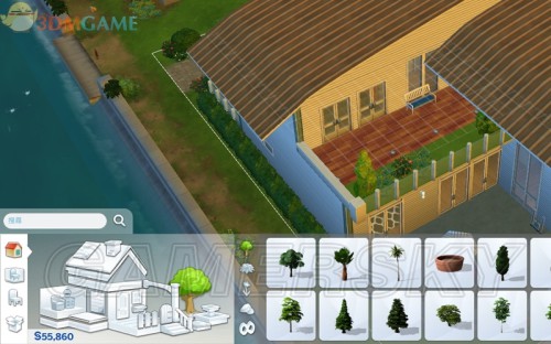 (1)按房屋分类:在左边有一个房屋外观图,点选某个部件,会在展窗中出现同类的各种部件。比如笔者点了盆栽,可选的户外植物有几十种之多。