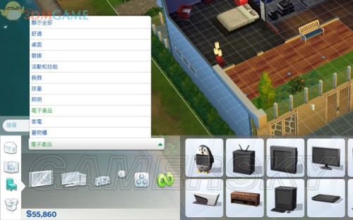 (4)家庭物品清单:此类别包含了你所购买的所有家俱、家电和装饰品,通过游戏得到的各种奖励品也都放在这里,可通过此界面将东西摆放在房间里,没用的物品也可以在这里出售。