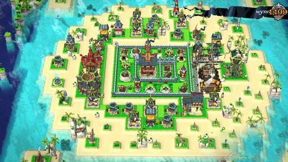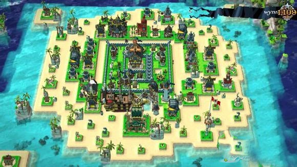 火力凶猛集中,piratehall位于中心。保护不错。但资源保护不行,放的太外边,很容易让只夺取资源的敌人得手,资源生产建筑过于集中靠拢,且无保护。完全浪费掉了装饰建筑用以扩大沙滩拖延时间的效果。阵型并未下很大功夫。防御指数:两星半