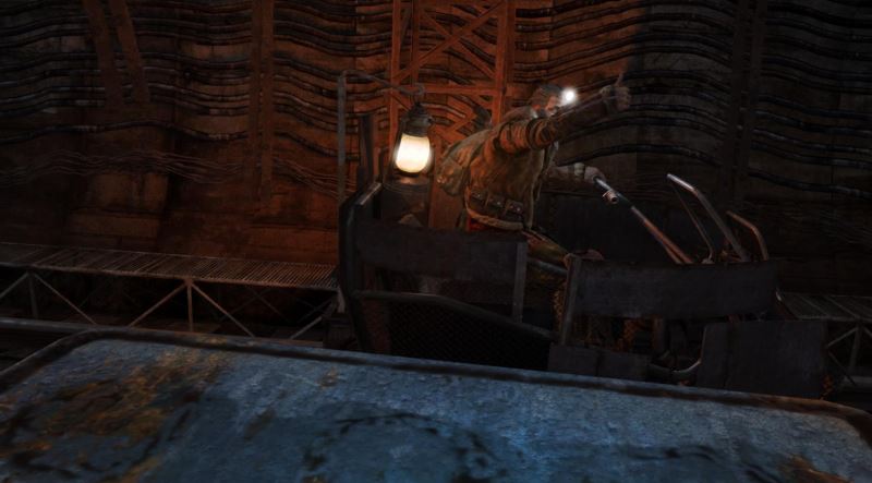3、到达任务章节的目的地后,跳上隔壁的火车,解决躲在货物箱后面的敌人。
