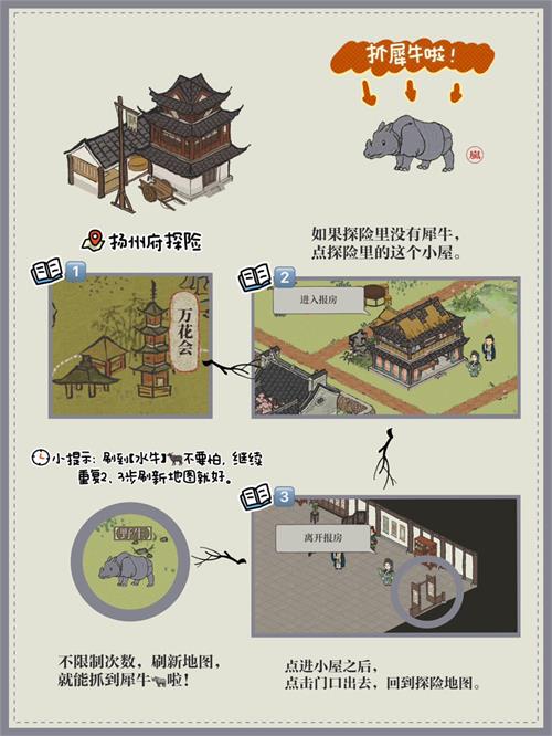 江南百景图犀牛怎么抓?下面小编给大家整理了江南百景图犀牛获得攻略,快来看看吧!