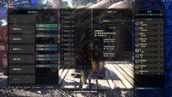 联机就没什么好说的了,正好有个三级孔,吧心眼珠换成耐衡珠,再也不用担心被太刀和双刀欺负了。