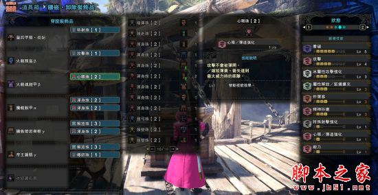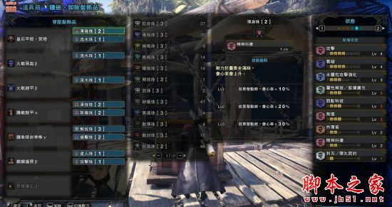 对于属性弹种,尽管超会心的附赠收益没了,但是在当前版本,尚未有历战王绚辉龙时,属性弹绑定了火龙两件套。考虑到火龙防具的技能和孔位,除非打火炎弹可以利用火龙β腰,否则只能用火龙系列的头部和胸部,其他部位太难入装。最后还是回归了冥灯γ手腰腿三件。