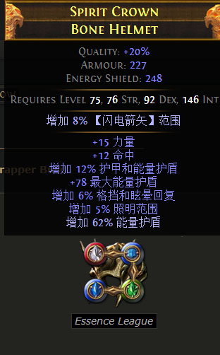 头盔:高能量护盾+抗性优先,底子可以找“召唤物伤害”的【唤骨头盔】,注意不要像作者那样去