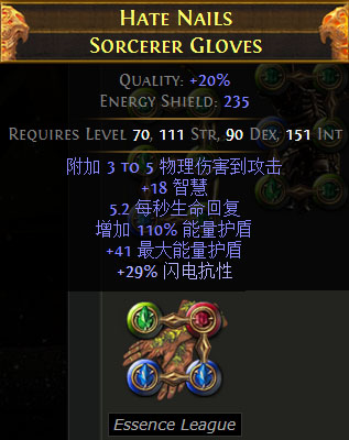 手套:高能量护盾、带抗性攻速更佳。