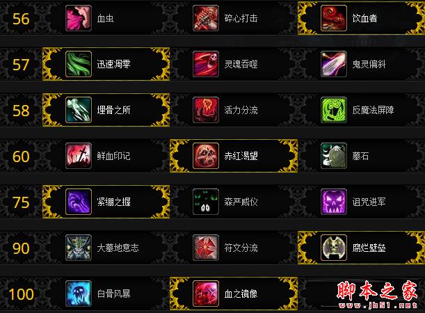 魔兽世界7.2血DK天赋加点(75级天赋可用诅咒进军替换)