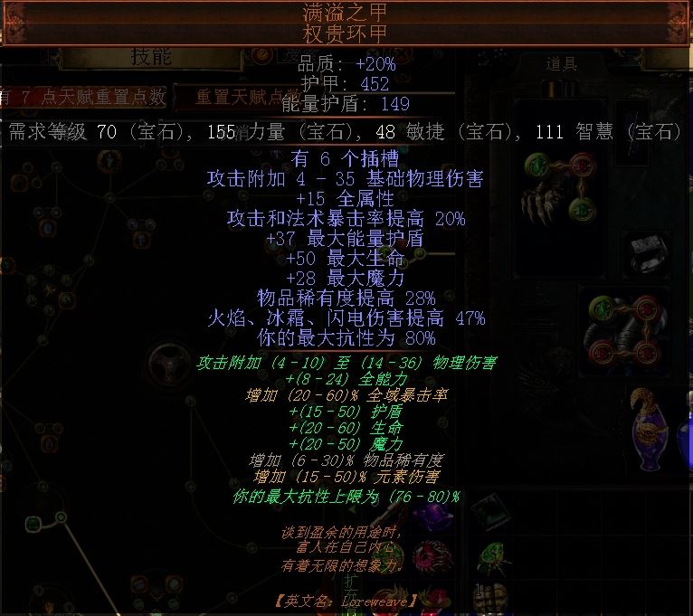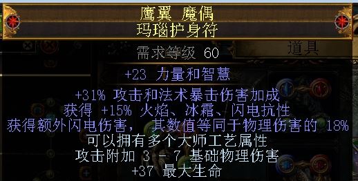 这衣服物理点伤,高的一批,全属性可拟补智力,暴击,生命,元素伤,全吃,最大抗性80对于几乎0防御机制的暴徒来说提供了硬减伤,如果血量不够的可以选择瘦腹。