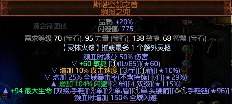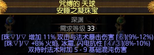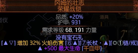 熊头攻速(节约天赋),暴击,血量,敏捷,都比深渊巨盔好,这个BD非常缺敏捷,附魔火球+1【核心】