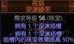 腰带随意,反正就是补够抗性增加伤害,也就是增加暴击,我选择深渊腰带,+50%珠宝效果我的