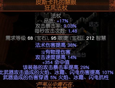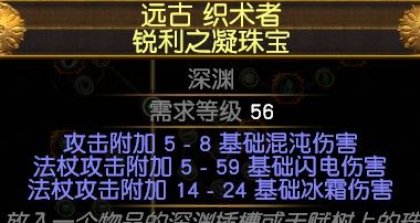 后期可以换魔性法杖底子的黄装法杖,必须要有T1闪电伤害、攻速、暴击、最低双T1。