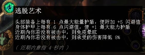 能量护盾全满时,总闪避提高20%,在打BOSS的时候