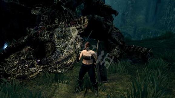 4.红龙断尾拿飞龙剑应该很多新手都知道了,就不提了。而如何抵达红龙下的篝火,首先将负重压至25%下,先引诱红龙喷火后躲在桥中央的凸出平台处,一段时间后红龙会跳至桥上,这个瞬间全力冲刺到篝火就行,点完篝火后可以回头捡桥上的大剑,也是常规必得的最强武器之一。