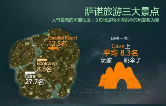 平均每局跳27人!超过四分之一的玩家跳这,少说也得是个机场或者狮城那么大吧?但是你没有看错,总共就图片上这么小一个遗址,不过资源可是肥的流油了。