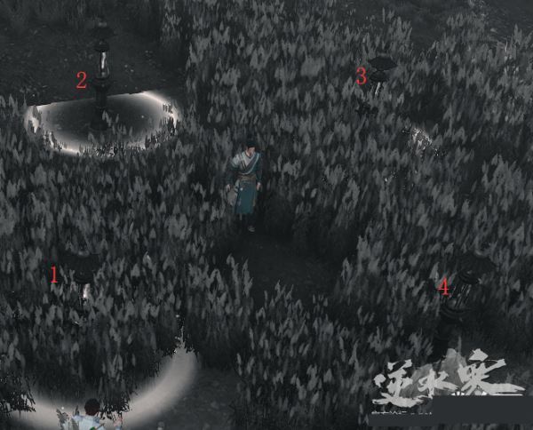 触发剧情后依次打柱子,然后走到NPC旁边,触发剧情