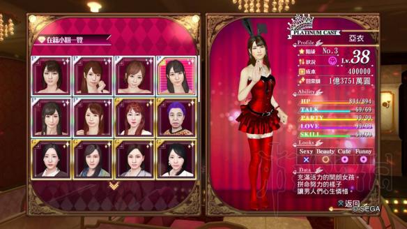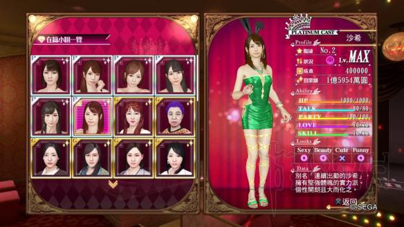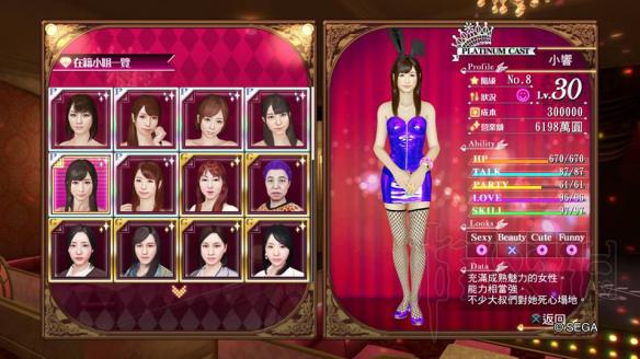 现在介绍一下白金红牌(有5位都是投票前5女优),以及支线特别加入的(白金红牌才可以做特别训练跟打扮,特别训练同5代的对话模式,至于怎么对话因为中文化了看你怎么选搂,全部练习完可以解开最终的支线任务,特别练习每次营业后只能玩一次,所以要刷练习就得一直营业)。