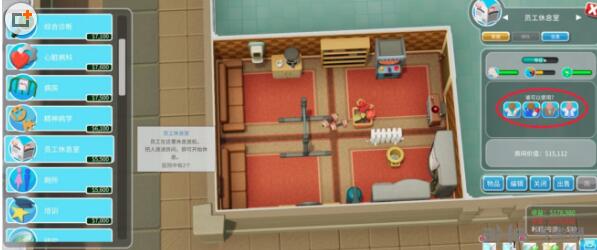双点医院员工休息室有什么用 员工休息室设施效果详解
