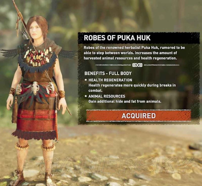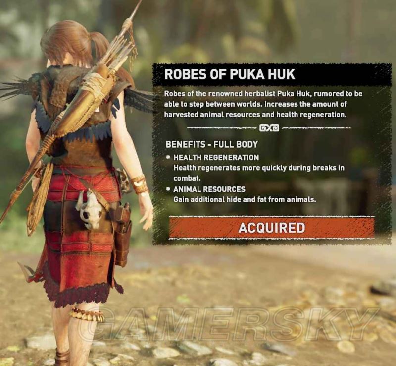 草药学家Puka Huk的长袍,传说能够跨越世界。可以加快恢复速度,并且从动物身上获得更多材料奖励。