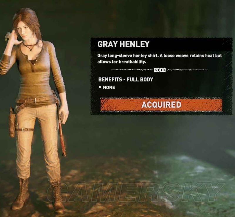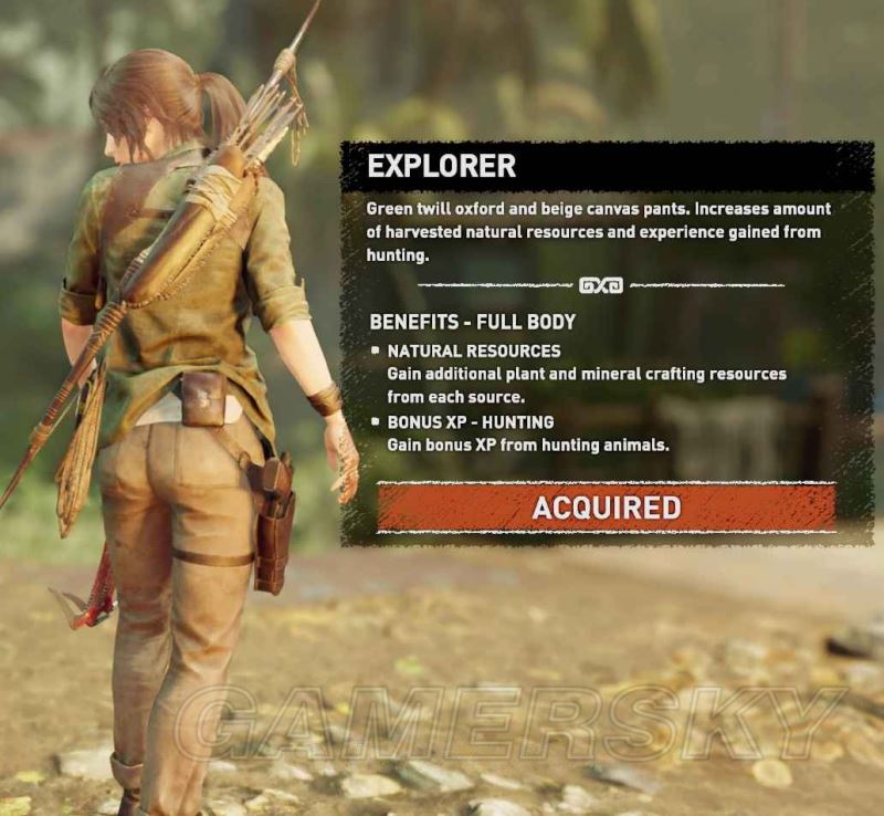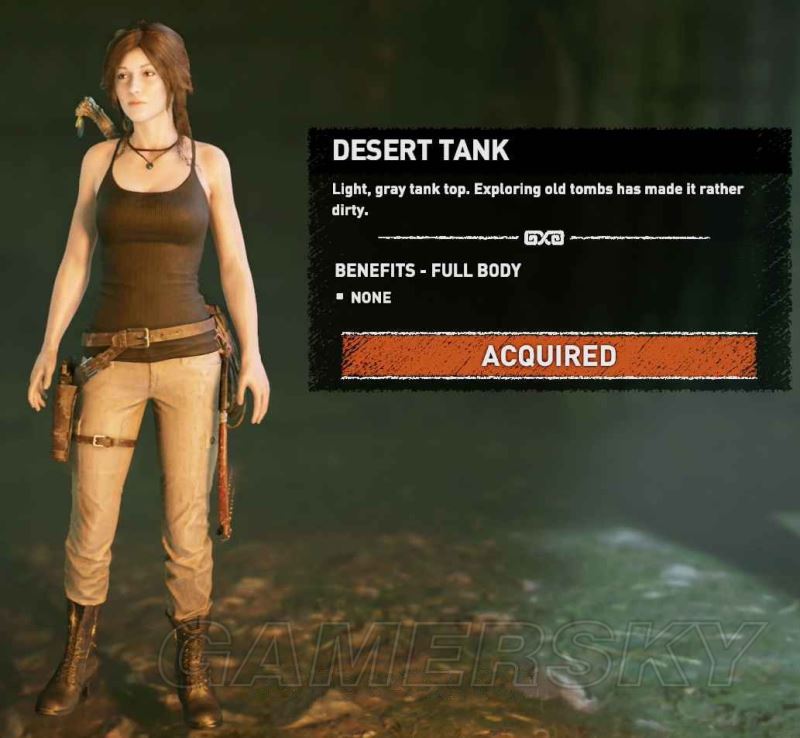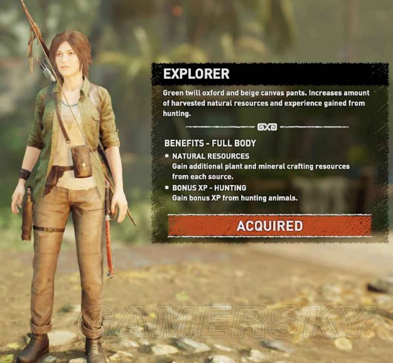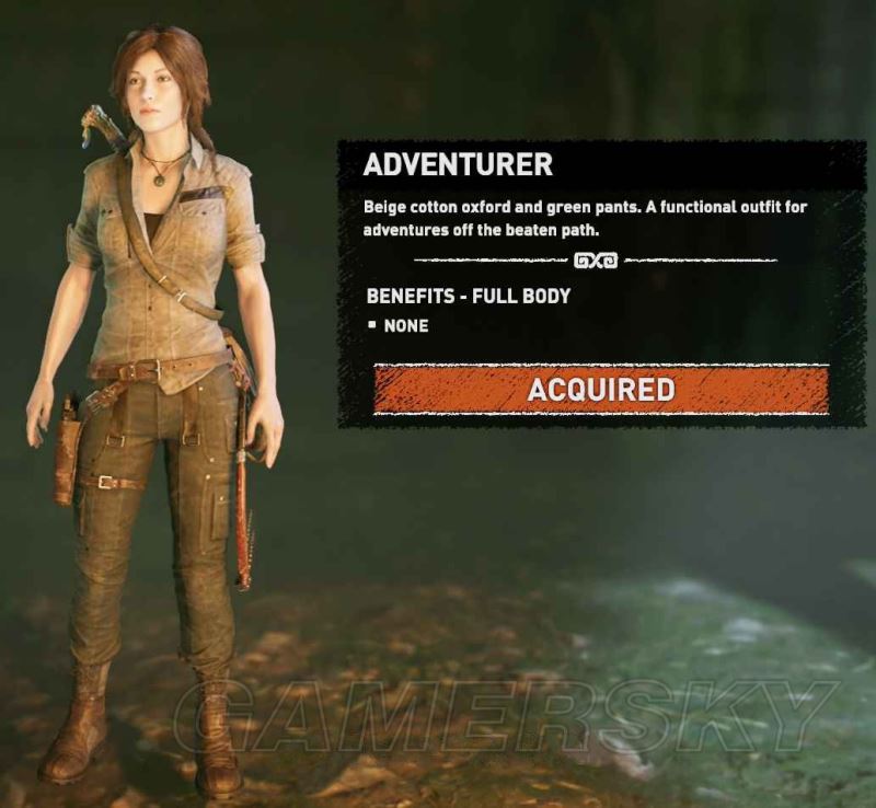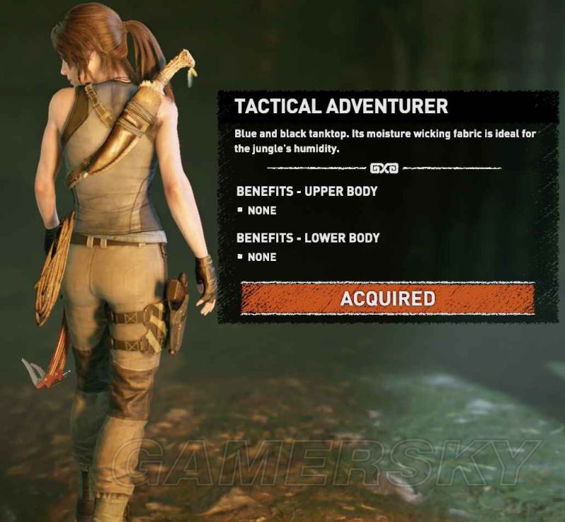 以下展示的服装中,部分服装是可以通过剧情解锁的,还有一些是从古墓中获得的遗迹服装,或是商人NPC处购买、支线任务奖励获得,以及玩过《古墓丽影:崛起》的特殊奖励,和豪华版的特殊服装。