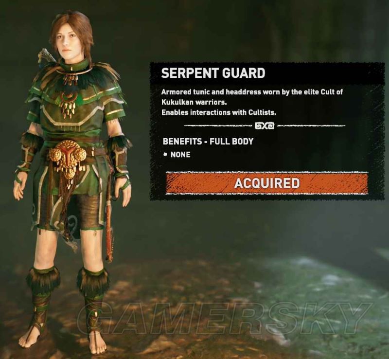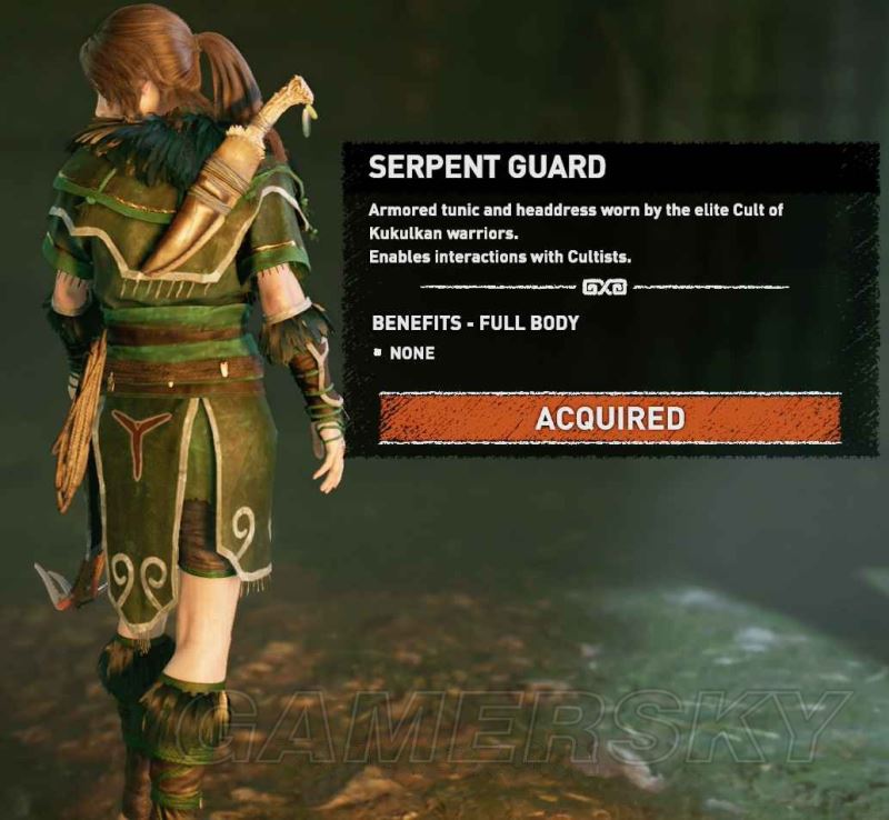 崇拜羽蛇神库库尔坎的精英战士们所穿的铠甲和头饰。穿上这件衣服可以与教徒互动。