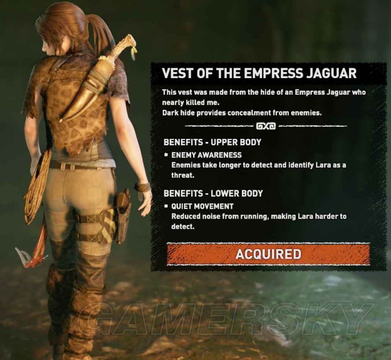 Quiet Movement:减少跑步时的噪音,使劳拉不易被敌人发现。