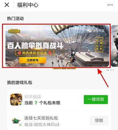 3、跳转至福利中心。热门获得第一个【百人跳伞拟真战斗】,抢先体验夺现金图片,点击跳转。