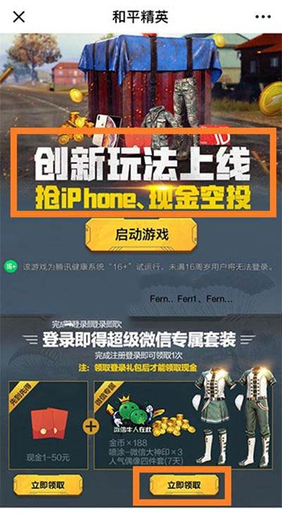 5、重要的是:在这之前要登录自己的微信区的游戏账号。然后点击【立即领取】。否则是无法领取的。