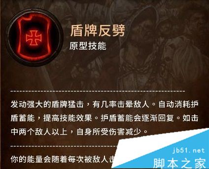 盾牌反劈可以击晕敌人并减少自身所受伤害。