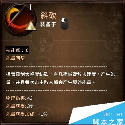 本身能量产生技能斜砍的范围和伤害也不错。