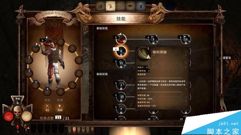 帝国士兵康拉德·沃尔伦是一个均衡发展的战士。