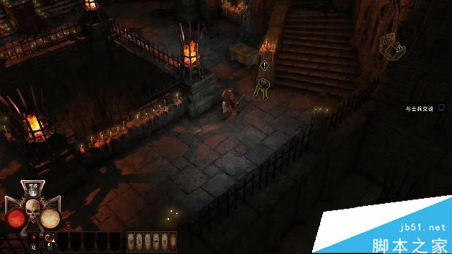 按Q喝药后楼梯边的士兵才会跟你交谈。