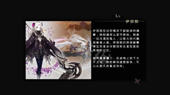 擅长用镰刀的鬼人,近战输出型,闪避技能是瞬间移动,无敌时间长有位移。伊邪那性能非常强,综合了扎夫和威尔的优势,并且起手非常快。