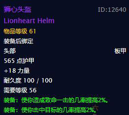 头:战士没得说,肯定是锻造的狮心头,其完美的属性可以用到T2都完全不是问题,而盗贼和猎人在这个时期并没有什么好的选择,所以我推荐盗贼拿STSM精英BOSS的无辜者面具或者T0套装。猎人可以选择STSM血色区最后BOSS出产的40AP+1暴击的暴君头。
