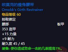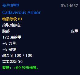胸甲:不知道黑石深渊的竞技场2暴击的胸甲在这个版本有没有,所以推荐TL学院的苍白胸甲,苍白胸甲是通灵学院6个BOSS的共有掉落,所以搞到手的机会还是比较大的。当然这件胸甲也是苍白系列最好的东西,想凑套装的就算了。