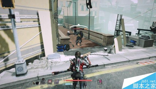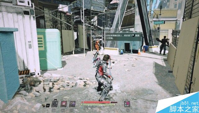 击败BOSS可以获得监狱长的无人机,按3释放无人机,鼠标中键锁定敌人之后,按3可以命令无人机开火。将2个扔砖块的家伙干掉之后,上旁边的能量电梯。