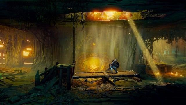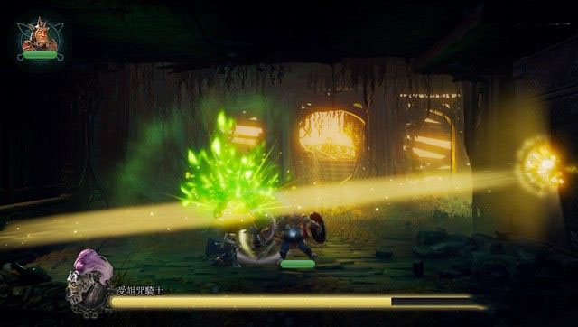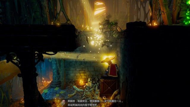 最后,使用空格+S下砸触发右侧的木板机关,将阳光引导进来,BOSS再次破防,攻击BOSS,将其击杀。