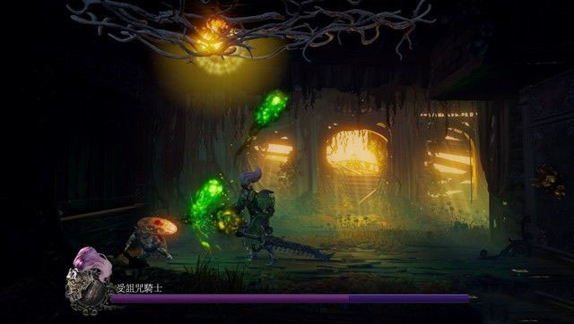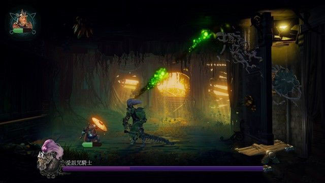 使用盾牌反弹BOSS打出的绿色喷流,将喷流反弹到上面的枯树枝上,随后阳光照射进来,BOSS再次破防,攻击BOSS,进入第三阶段。