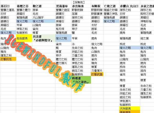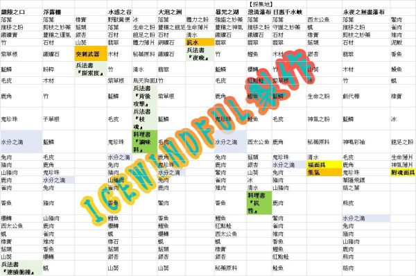 主地图可收集材料一览: