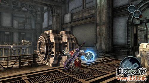 踏着车厢往上回到一开始的车站大厅,迎接War的是新敌人,手持双刀的Wraith Scout。 Wraith Scout的双刀攻击威力不小,而且它的双刀回旋斩一发动就没办法中断,若是大意可会对War造成严重损伤。打倒所有敌人后,从车站大厅东侧的门走上二楼,粉碎南侧的蓝色水晶继续往前,会来到一个有两块浮游石的水坑,砍击石头上的剑型机关就能让浮游石往上移动,跟着跳上去攀住就能继续往前,来到下一个区域。
