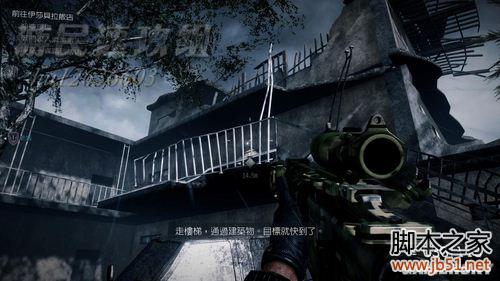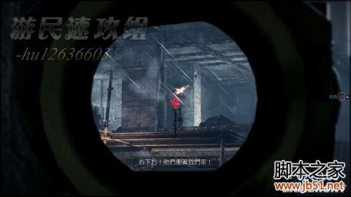 离开 房子下面后将前方铁皮屋里面巡逻的敌人干掉。