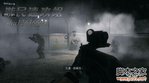 动画结束后来到溜冰场,一进入溜冰场就中埋伏,烟雾弹挡住了视线,但是大多数敌人都带有手电筒,因此可判定敌人位置,躲在掩体后面猥 琐击杀掉全部敌人即可。