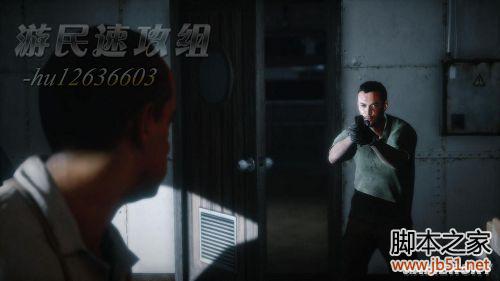 拿手电筒的那个一转头就走出去,把右边的敌人给弄死,然后自动会把另一个给弄死,顺便获得小手 枪一个。
