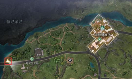 拿到藏宝图之后来到渡鸦避难所右边,就在下图位置,池中有一大根树枝,开始挖掘获得宝藏。