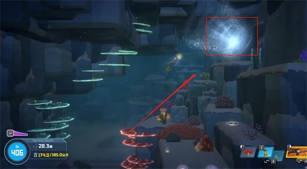 2、大白鲨漩涡的位置和玩家下海的位置离得并不远,玩家只需要在浅海区右边仔细寻找就可以找到大白鲨漩涡。