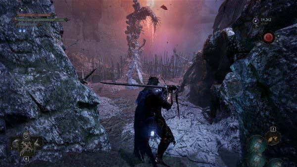 然后往上爬引诱他上去,找上去后赶紧爬梯子下去,控一下距离,多试几次他就会掉下去,掉两次他就没了。一次能有1w左右的魂和5个影界残渣,效率还是很高的。