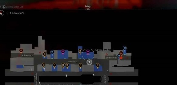 【苍天堀】位于世嘉苍天堀俱乐部,柜台和自动售货机之间的地上。