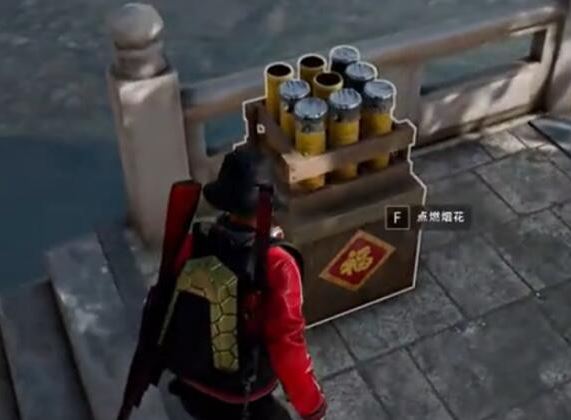 4、当我们寻找到烟花之后,只需要靠近烟花,按下F键即可燃放烟花。