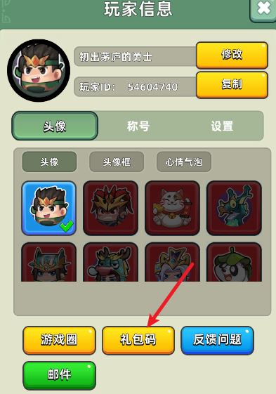 1、进入游戏后点击左上角头像,接着找到“礼包码”按键并点击。