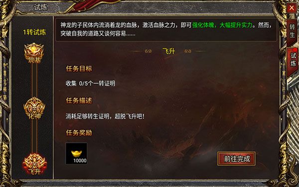 第三重飞升,需要消耗到一定的转生证明才能完成任务,相对于前两重,这一次需要去副本进性击杀怪物来获取转生证明;