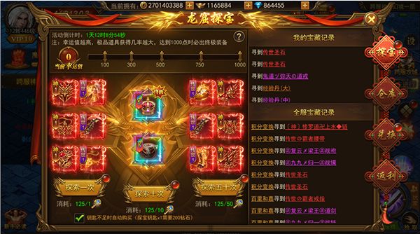 3.幸运值达到1000点时,探宝必出终极道具一件,幸运值清零