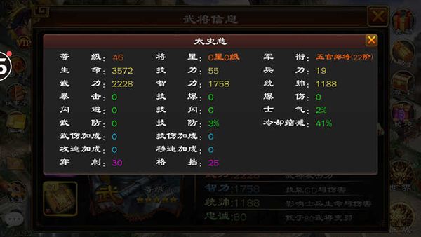 太史慈配高冷却装备,出招一定要快,副将用掌阅骑(一点回技,其他全侵蚀)。